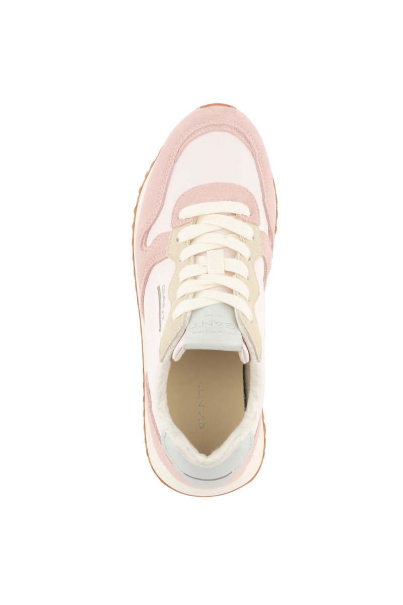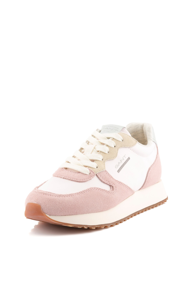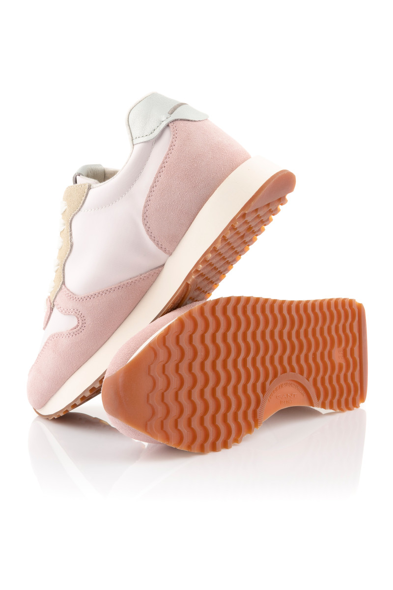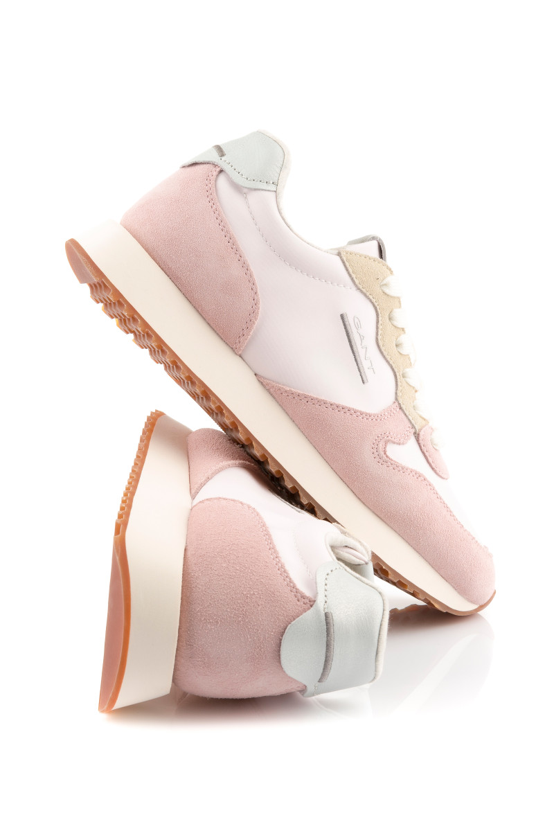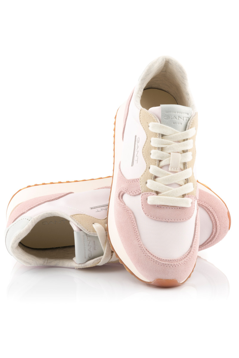 Dámské tenisky s kombinovaným povrchem, které vás zaujmou svým univerzálním využitím a propracovanými detaily. Pastelově barevné panely z jemného semiše a hladké textilie doplňuje zesílená pata s koženým detailem. Nechybí decentní logo Gant umístěné na vnější straně a na jazyku. Pohodlný interiér je opatřen koženou stélkou. Dokonale stylová obuv, která bude ozdobou vašeho sportovně-elegantního outfitu.