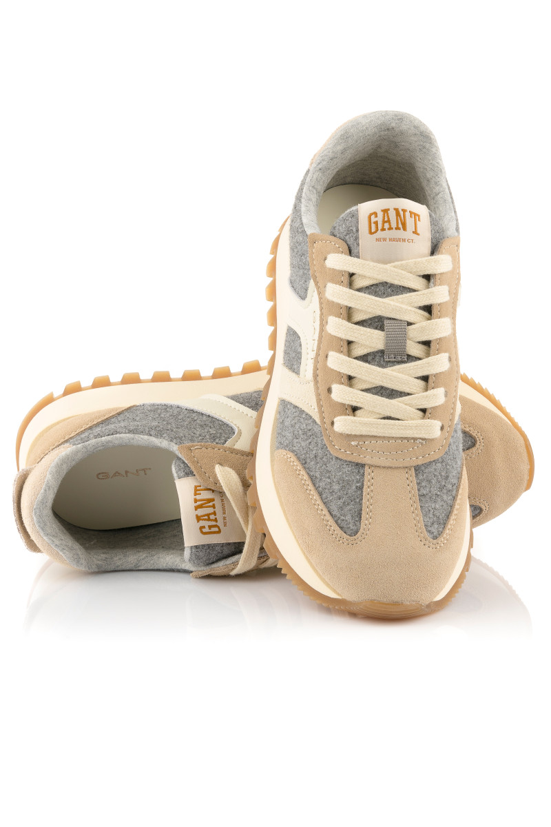 Dámské tenisky s kombinovaným povrchem, které vás zaujmou svými originálními detaily a maximálním komfortem při nošení. Tonální panely z jemného semiše a flanelové tkaniny doplňuje logo Gant umístěné na vnější straně a na jazyku. Pohodlný interiér je opatřen koženou stélkou. Dokonale stylová obuv, která bude ozdobou vašeho ležérního outfitu.