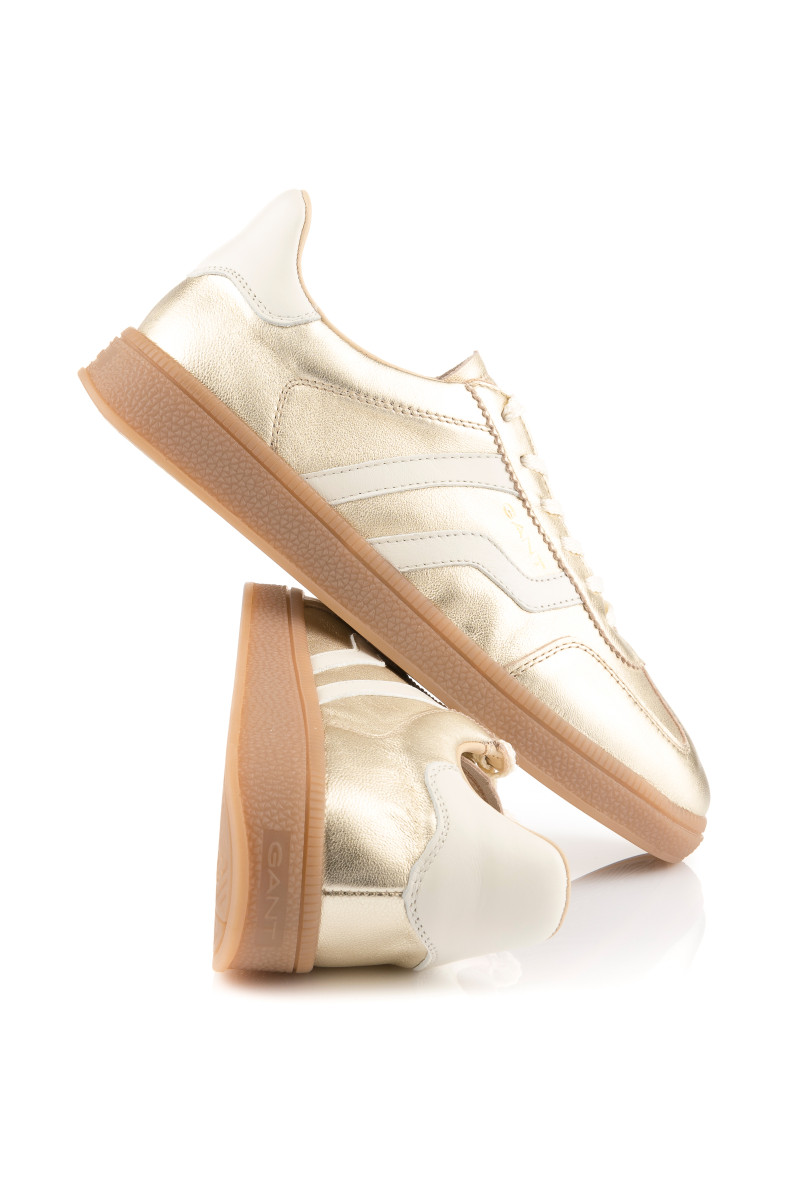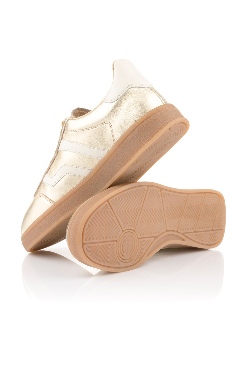 Dámské kožené tenisky, které vás zaujmou svým originálním vzhledem v retro stylu. Efektně prošívaný povrch z kovově lesklé usně prémiové kvality doplňují kontrastní detaily na patě a po stranách, které dodávají botě sportovní nádech. Celokožený interiér zaručuje maximální komfort při nošení. Dokonale stylová obuv, která bude ozdobou vašeho outfitu.