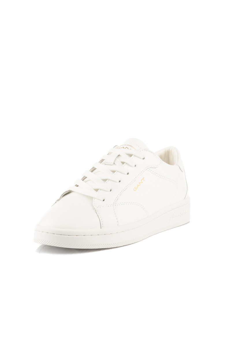 Dámské tenisky z hladké hovězí usně prémiové kvality, které vás zaujmou svým univerzálním využitím a maximálním komfortem při nošení. Sportovně-elegantní design s tkaničkami na šněrování doplňuje prošívaná podrážka z kvalitní pryže. Boty jsou ozdobeny decentním logem Gant umístěným na vnější straně a na jazyku. Textilní interiér je opatřen koženou stélkou. Dokonale stylová obuv, která bude ozdobou vašeho outfitu.