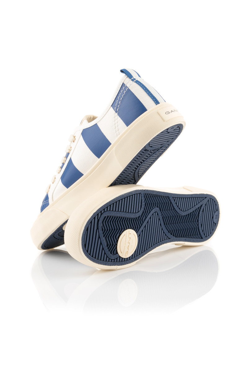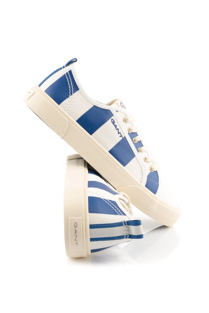 Dámské tenisky s pruhovanou textilií na povrchu, které si vás získají svým univerzálním využitím a originálními detaily. Ležérní design s kulatou špičkou a tkaničkami na šněrování doplňuje jemně strukturovaná pryžová podrážka a kontrastní poutko na patě. Nechybí originální logo Gant umístěné na vnější straně a na jazyku. Dokonale stylová obuv, která bude ozdobou vašeho letního outfitu.