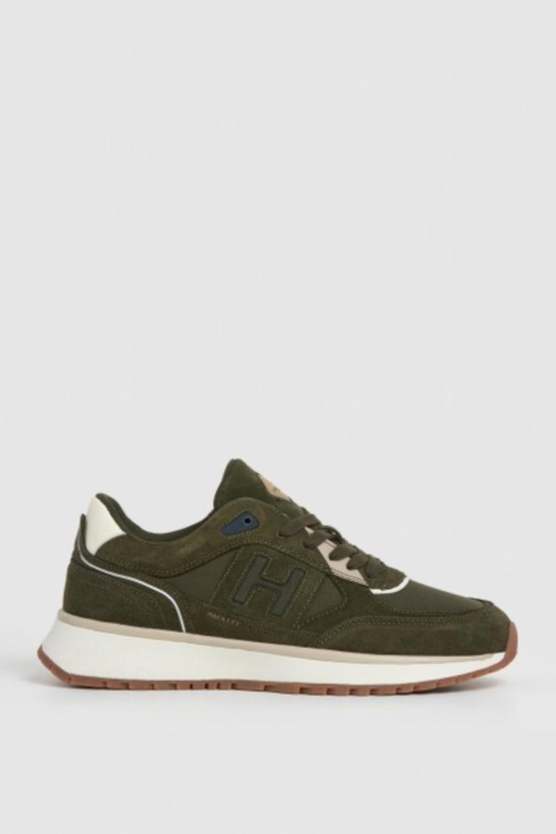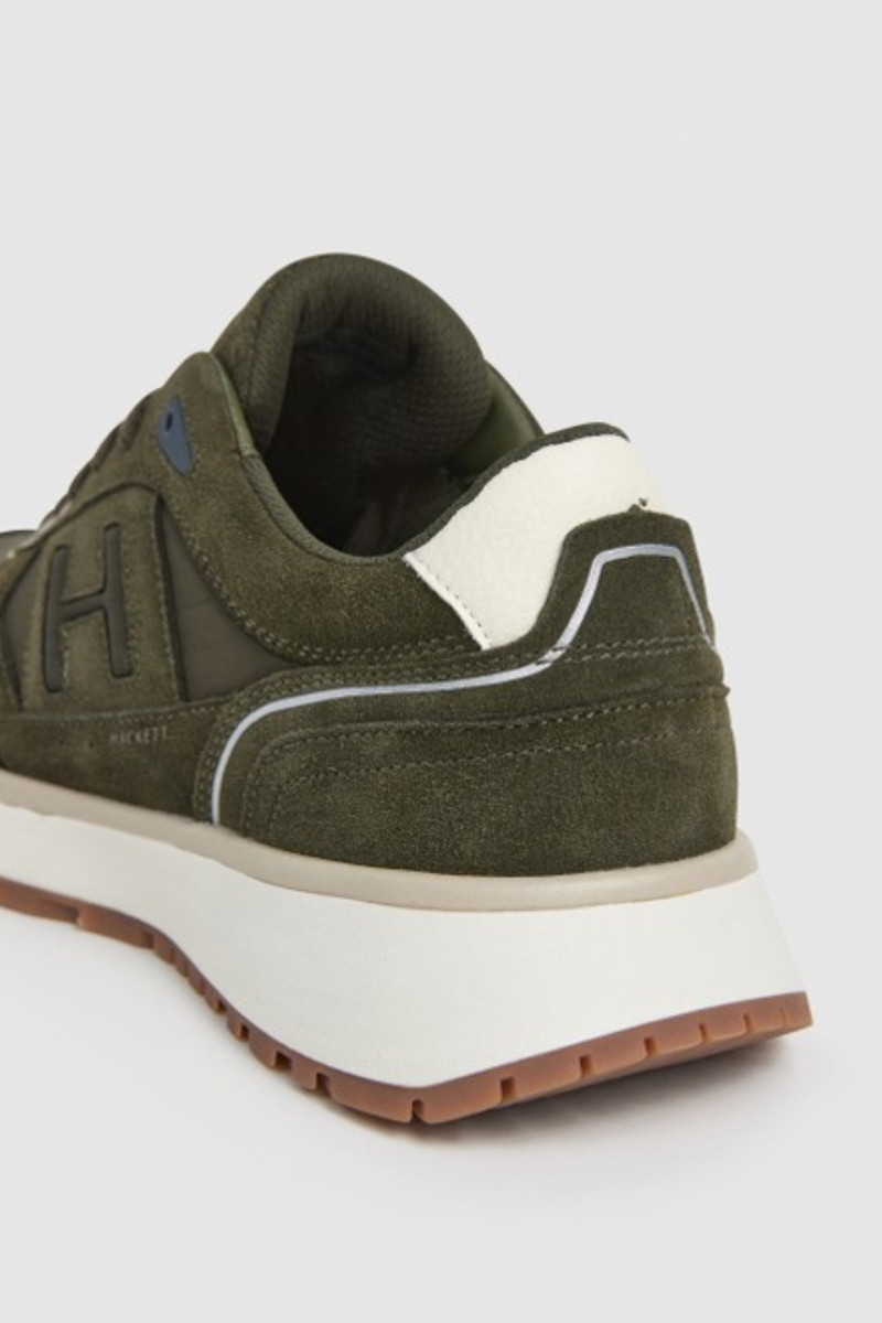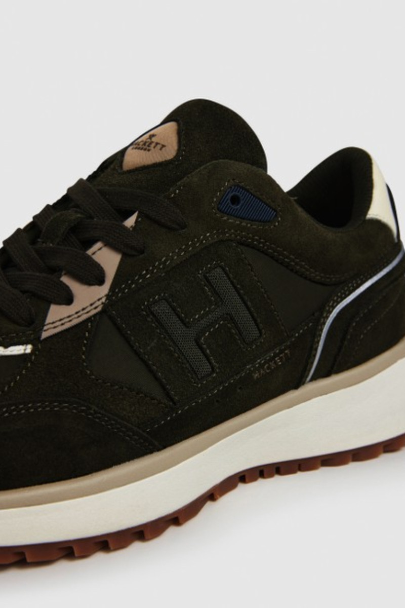 Pánské tenisky z broušené hovězí kůže prémiové kvality. Sportovní design s tonálním prošíváním a tkaničkami na šněrování doplňuje kožený detail na patě a vyšší strukturovaná podrážka z kvalitní gumy. Boty jsou zdobené monogramovým logem Hackett na vnější straně a na jazyku. Pohodlný interiér je vybaven textilní stélkou. Dokonale komfortní obuv, která stylově doplní váš neformální outfit.