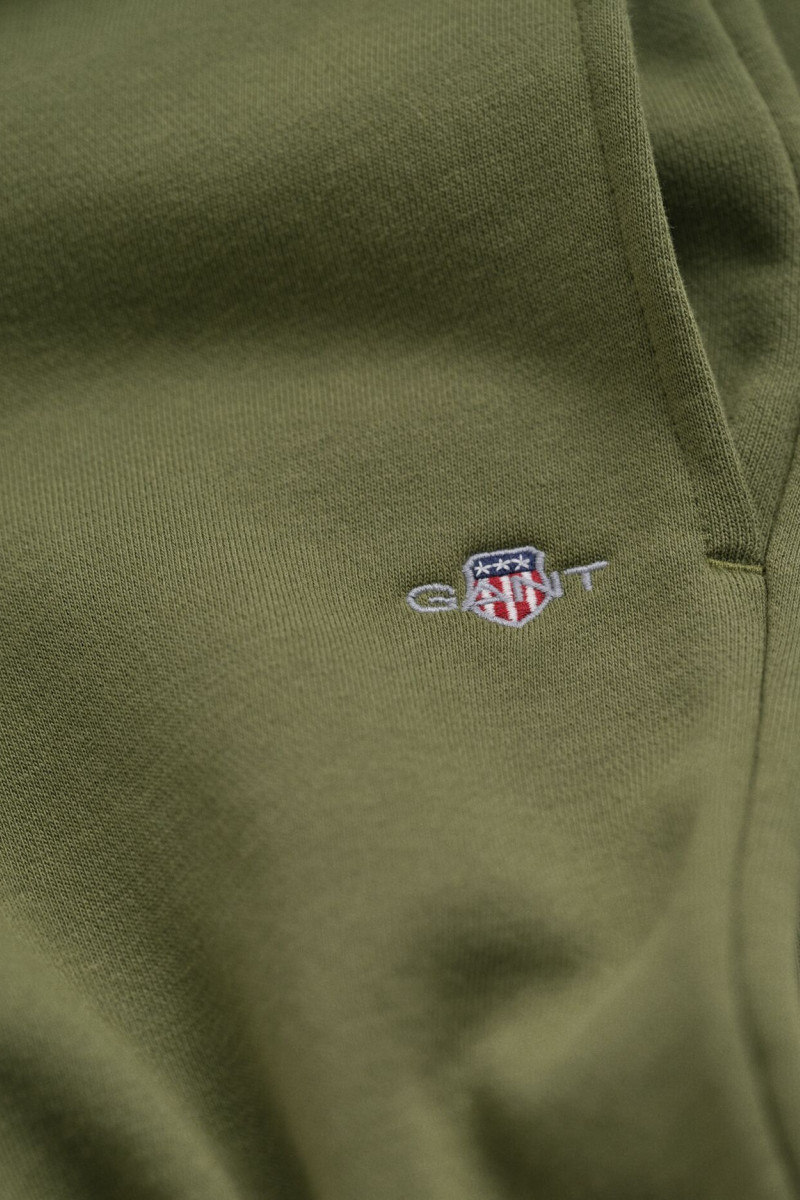 Chlapecké tepláky s ikonickým logem značky Gant vyšitým na stehně. Rovný střih nohavic, jenž je prakticky zakončen nápletem, doplňuje standardní výška sedu s pružným pasem na tkaničku. Nepostradatelnou součástí tohoto velmi pohodlného volnočasového kousku jsou dvě boční kapsy. Odolné a dlouhodobě tvarově stálé materiálové složení je tvořeno vysokým podílem kvalitního bavlněného vlákna, které vyniká svou neobyčejnou měkkostí, příjemnou hřejivostí avšak dokonalou prodyšností. Praktický artikl vhodný na sportovní aktivity i chvíle odpočinku.