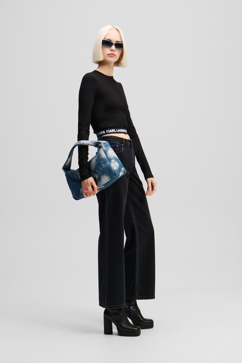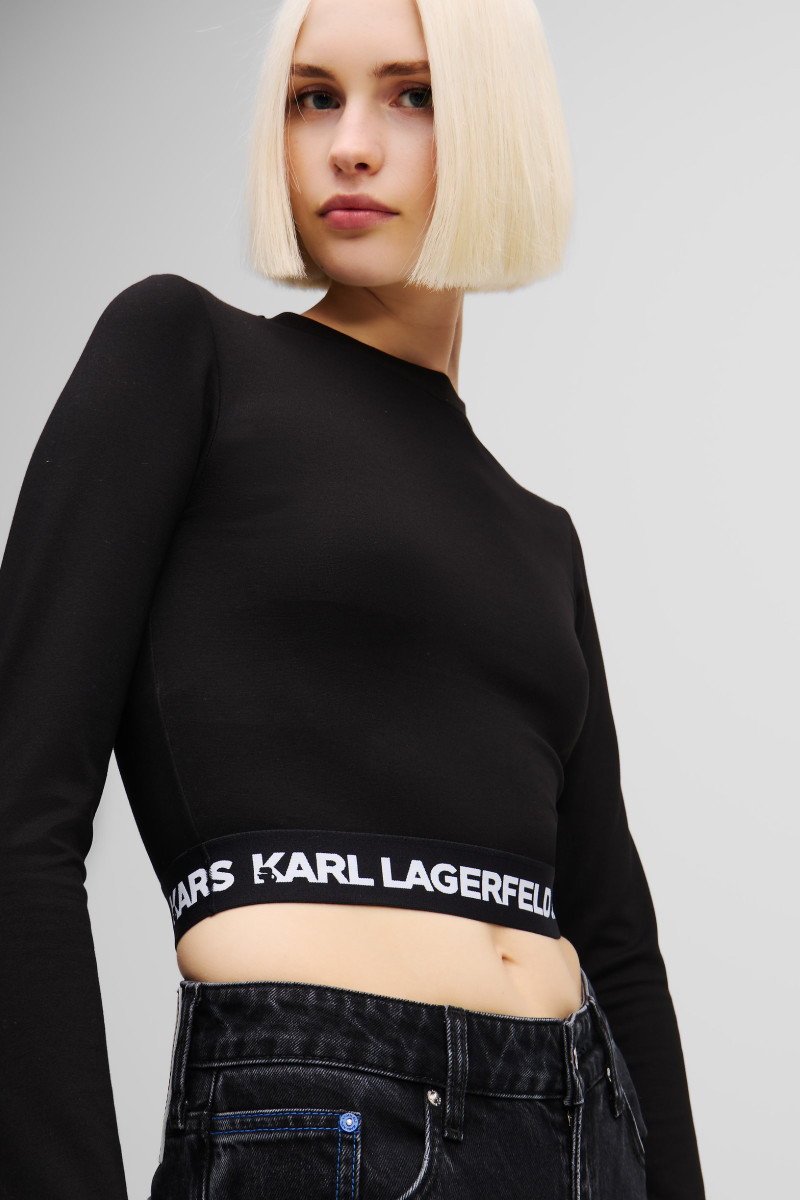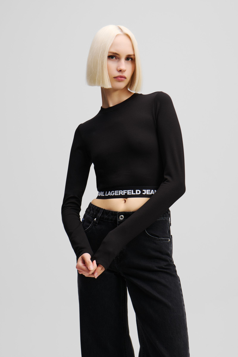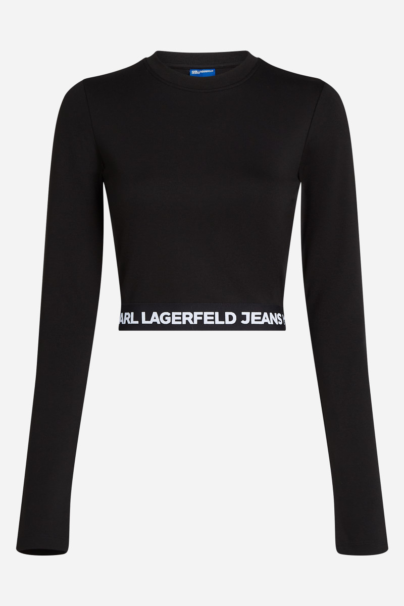 Dámský crop top s dlouhými rukávy a kulatým výstřihem. Zajímavý detail lemu zdobený kontrastním logem Karl Lagerfeld jeans. Materiálové složení je tvořeno směsí materiálů, které jsou příjemně měkké na dotek, během nošení prodyšné a díky své pružnosti a elasticitě velmi pohodlné. Stylový základ pro styling ve volném čase.