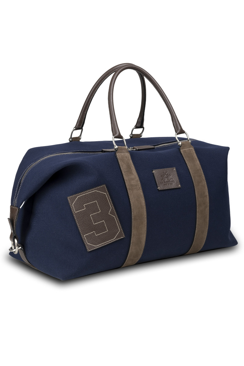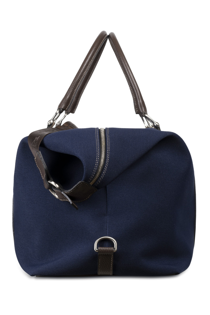 Cestovní taška z kombinovaného materiálu, která Vás zaujme svým univerzálním využitím a propracovanými detaily. Sportovně-elegantní design se zapínáním na zip a pevnými uchy pro přenášení v ruce doplňuje kožená nášivka s vytlačeným logem La Martina umístěná na přední straně. Nechybí odnímatelný ramenní popruh s nastavitelnou délkou. Prostorný interiér je opatřen jemnou žakárovou podšívkou a plochou kapsou na zip. Velmi praktický a vkusný doplněk, který podtrhne Váš životní styl.