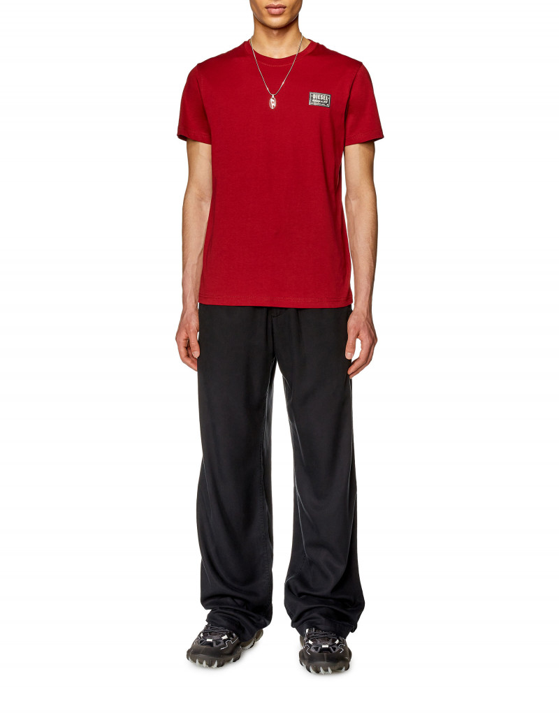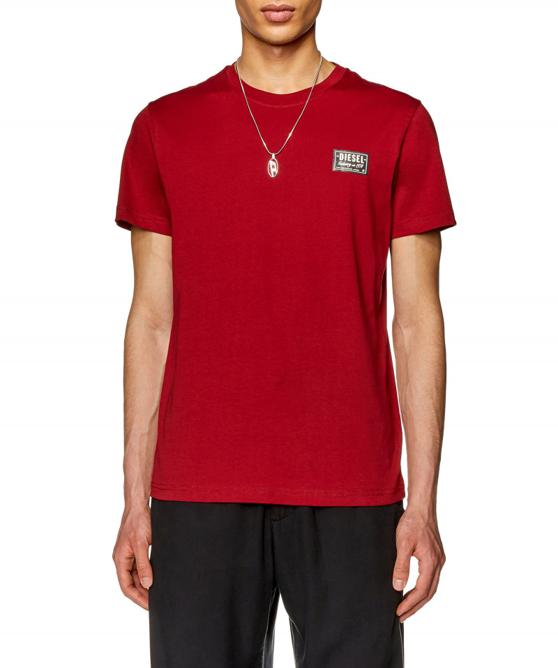 Pánské triko s krátkým rukávem. Slim fit užší střih. Vyrobeno z hladké komfortní bavlny. Na hrudi zdobeno obdélníkovým detailem pogumovaného loga Diesel. Žebrovaný pružný lem u krku. Model má na sobě velikost L a měří 188 cm. Velikost odpovídá běžnému značení, při výběru zvolte své obvyklé číslo.