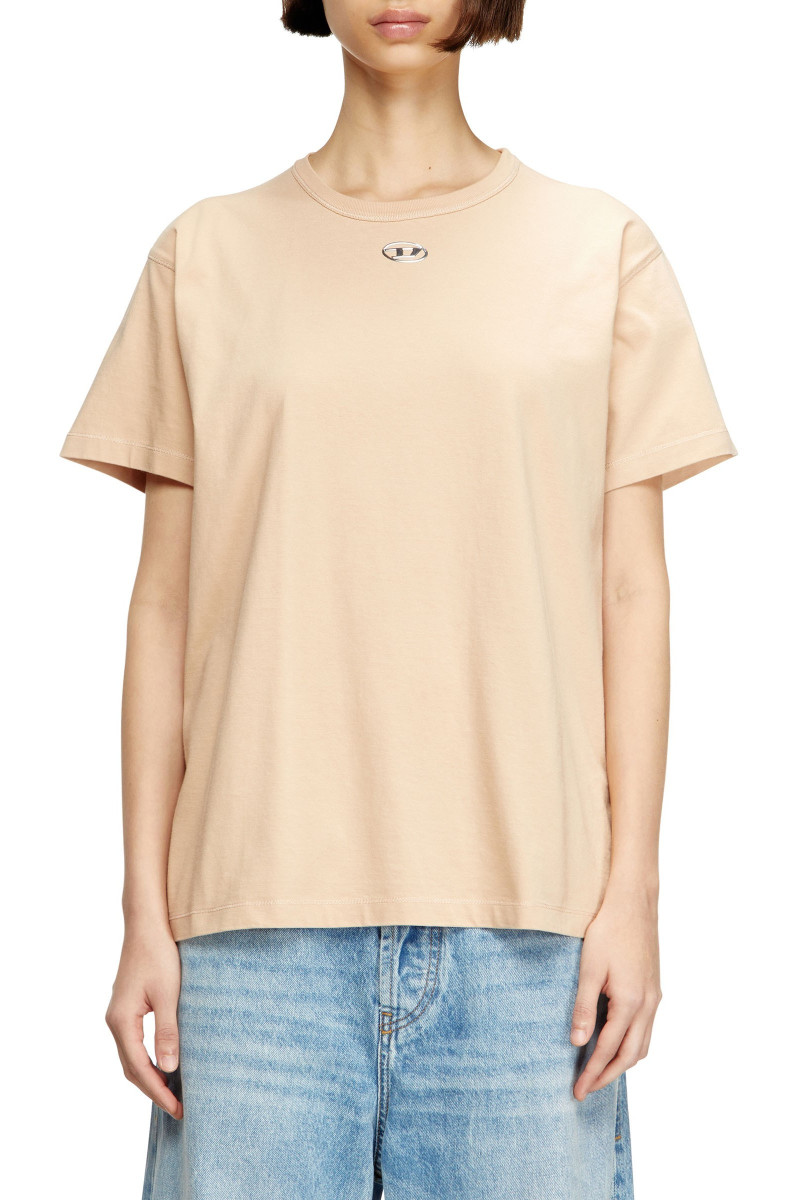 Dámské triko s krátkým rukávem. Rovný volný regular fit střih s kulatým výstřihem. Vyrobeno z měkkého bavlněného žerzeje. Na přední straně hrudi zdobeno vstřikovaným potiskem stříbrného loga ve tvaru ikonického Oval D. Upraveno metodou stone wash pro měkký pocit a lehký vintage vzhled. Modelka má na sobě velikost S a měří 175 cm. Velikost odpovídá běžnému značení, při výběru zvolte své obvyklé číslo.