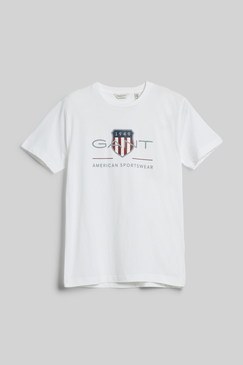 Dětské triko z neobyčejně měkkého žerzeje, jenž na hrudi zdobí dominantní logo značky Gant. Rovný, velmi pohodlný střih s krátkým rukávem doplňuje kulatý výstřih. Dokonale prodyšné a na omak velmi příjemné materiálové složení je tvořeno bavlněným vláknem organického původu, jenž je zárukou vysoce komfortního pocitu v průběhu nošení a dlouhodobé tvarové i barevné stálosti. Stylově vypadající artikl, který volnočasovým outfitům dodá nápaditý vzhled.