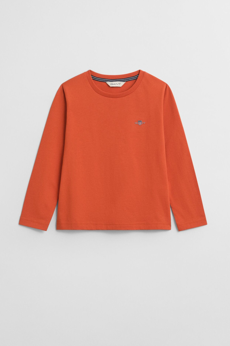 Dětské triko z hladkého, neobyčejně měkkého žerzeje, který na hrudi zdobí ikonická výšivka loga značky Gant. Rovný, perfektně padnoucí střih s dlouhým rukávem doplňuje velmi oblíbený kulatý výstřih. Materiálové složení je tvořeno 100% podílem bavlněného vlákna prémiového původu, které vyniká svou jemností, avšak odolností a dokonalou prodyšností. Praktický kousek, který si díky své všestranné kombinovatelnosti a nadčasovému designu najde nezastupitelné místo v každém šatníku.
