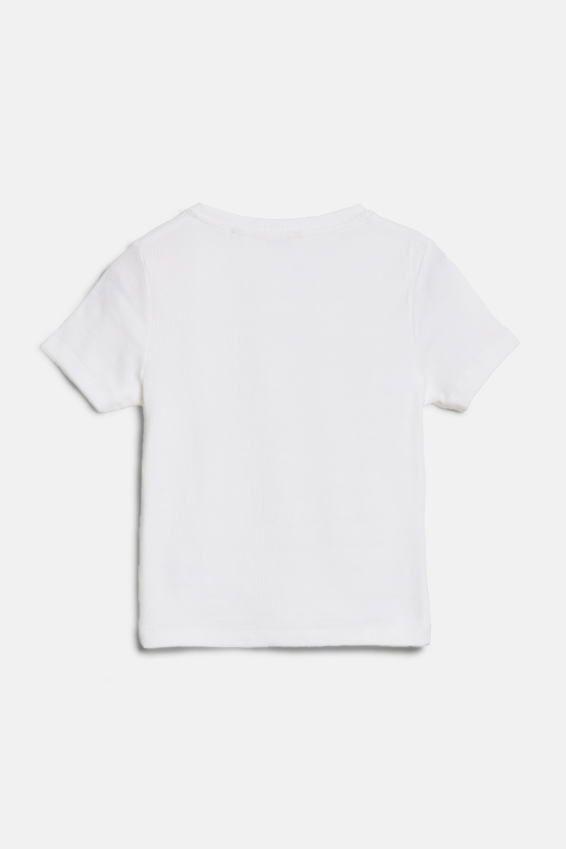 Dívčí krátkorukávové triko slim střihu z pružného, jemně texturovaného žerzeje. Kulatý výstřih doplňuje ikonické logo značky vyšité na hrudi. Materiálové složení tvoří příjemně měkké a dokonale prodyšné bavlněné vlákno prémiové kvality, které spolu s elastanem představuje záruku poddajnosti, avšak tvarové stálosti a především vysoce komfortního pocitu v průběhu nošení. Všestranně kombinovatelný kousek, který se stane nepostradatelnou součástí každodenních outfitů.