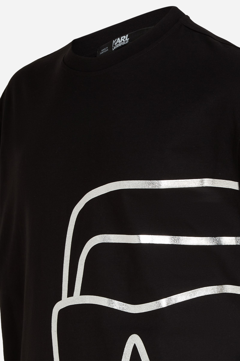 Pánské triko oversized střihu, které zdobí výrazný metalický potisk loga K/Ikonik na přední straně. Ležérní design s krátkým rukávem a žebrovaným lemem u krku doplňuje stříbrné logo KARL umístěné na spodní straně zadního dílu. Kvalitní úplet ze 100% organické bavlny zaručuje maximální prodyšnost, příjemný pocit při nošení a snadnou údržbu. Nezaměnitelně stylový kousek, který originálně doladí váš neformální outfit.