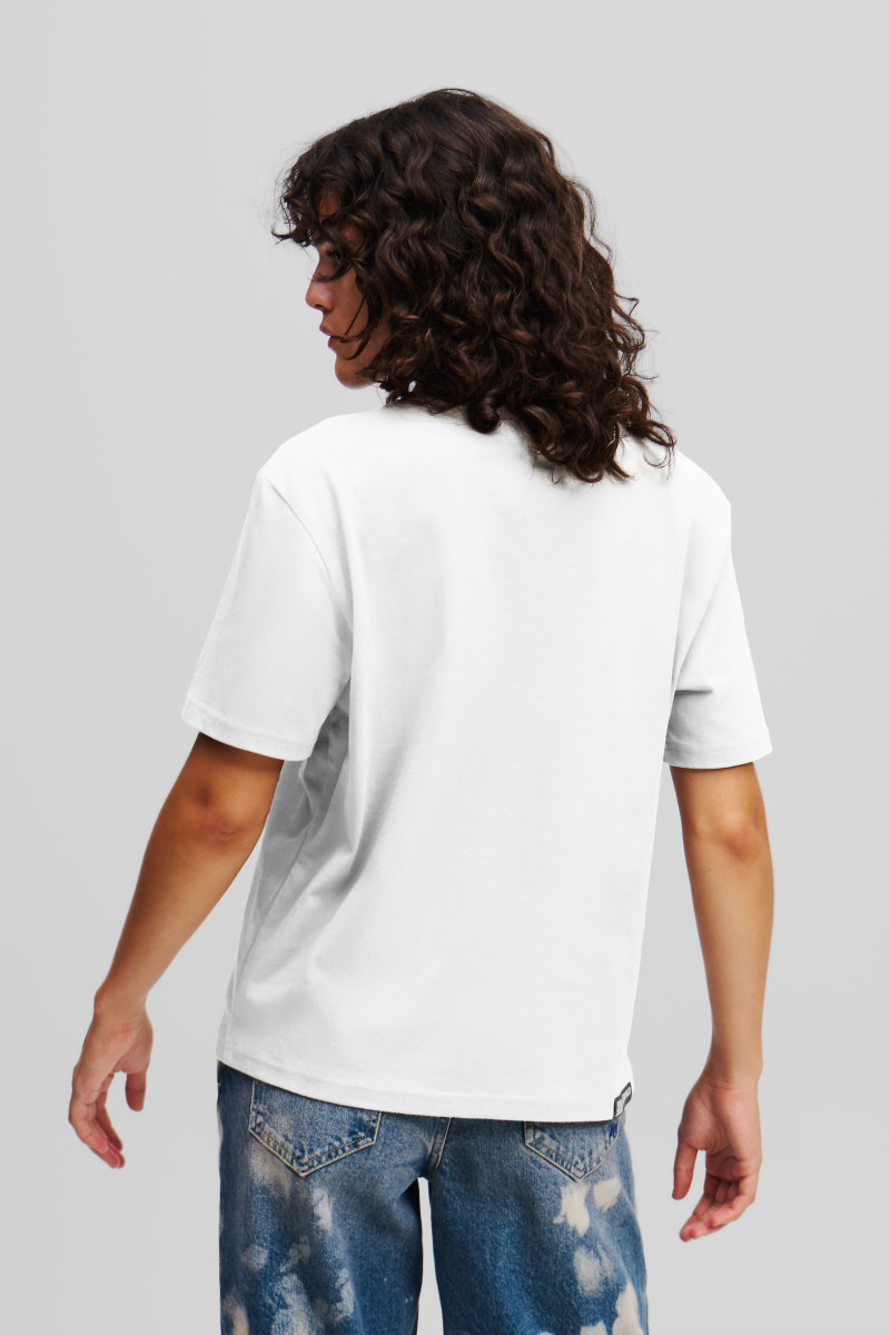 Dámské tričko rovného střihu s krátkými rukávy a kulatým výstřihem. Jednobarevný design je ozdoben kontrastním potiskem Karl Lagerfeld Jeans na hrudi a štítkem s logem na zadním lemu. Materiálové složení je tvořeno 100% bavlněným vláknem prémiové kvality, které je příjemně měkké na dotek, při nošení prodyšné a díky své pružnosti a flexibilitě také velmi pohodlné. Kvalitní jersey je zárukou tvarové i barevné stálosti. Stylový základ pro volnočasový styling.