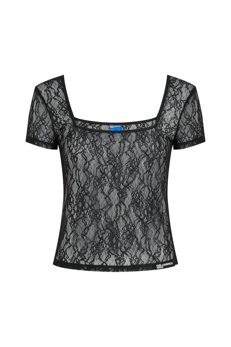 TRIČKO KARL LAGERFELD JEANS KLJ SS LACE TOP BLACK