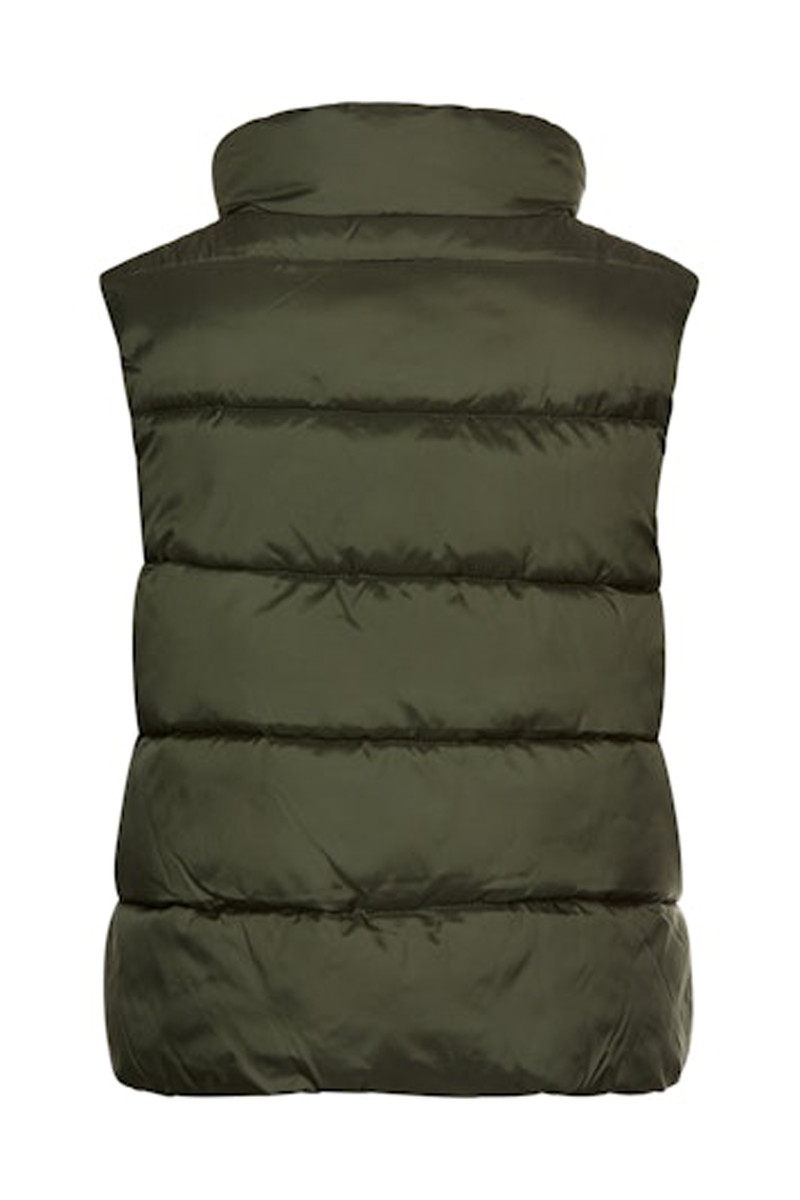Dámská krátká prošívaná vesta s kontrastním dvojcestným zipem do stojáčku, dvě boční výpustkové kapsy. Materiálové složení včetně lehké výplně zaručuje lehkost, pohodlí a nenáročnou údržbu. Tento praktický a nápaditý kousek dokonale zvýrazní každý váš sportovně laděný outfit.
