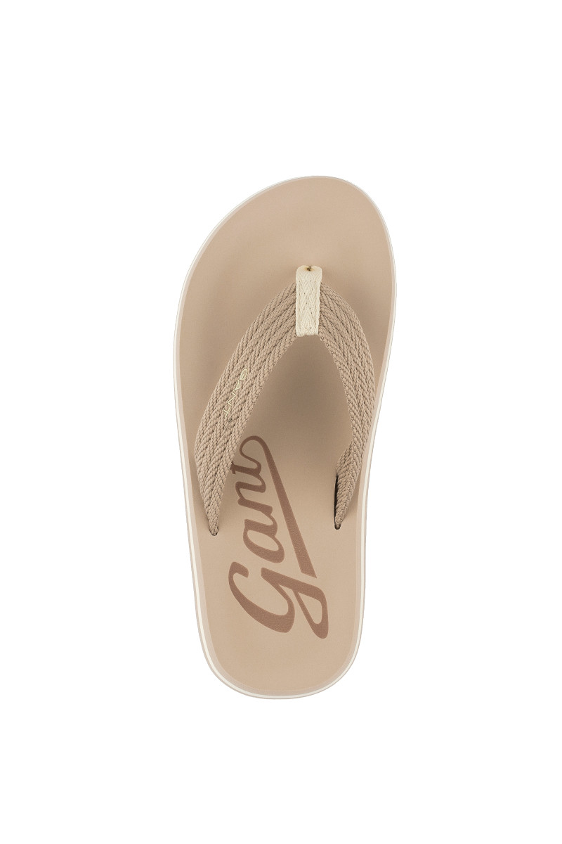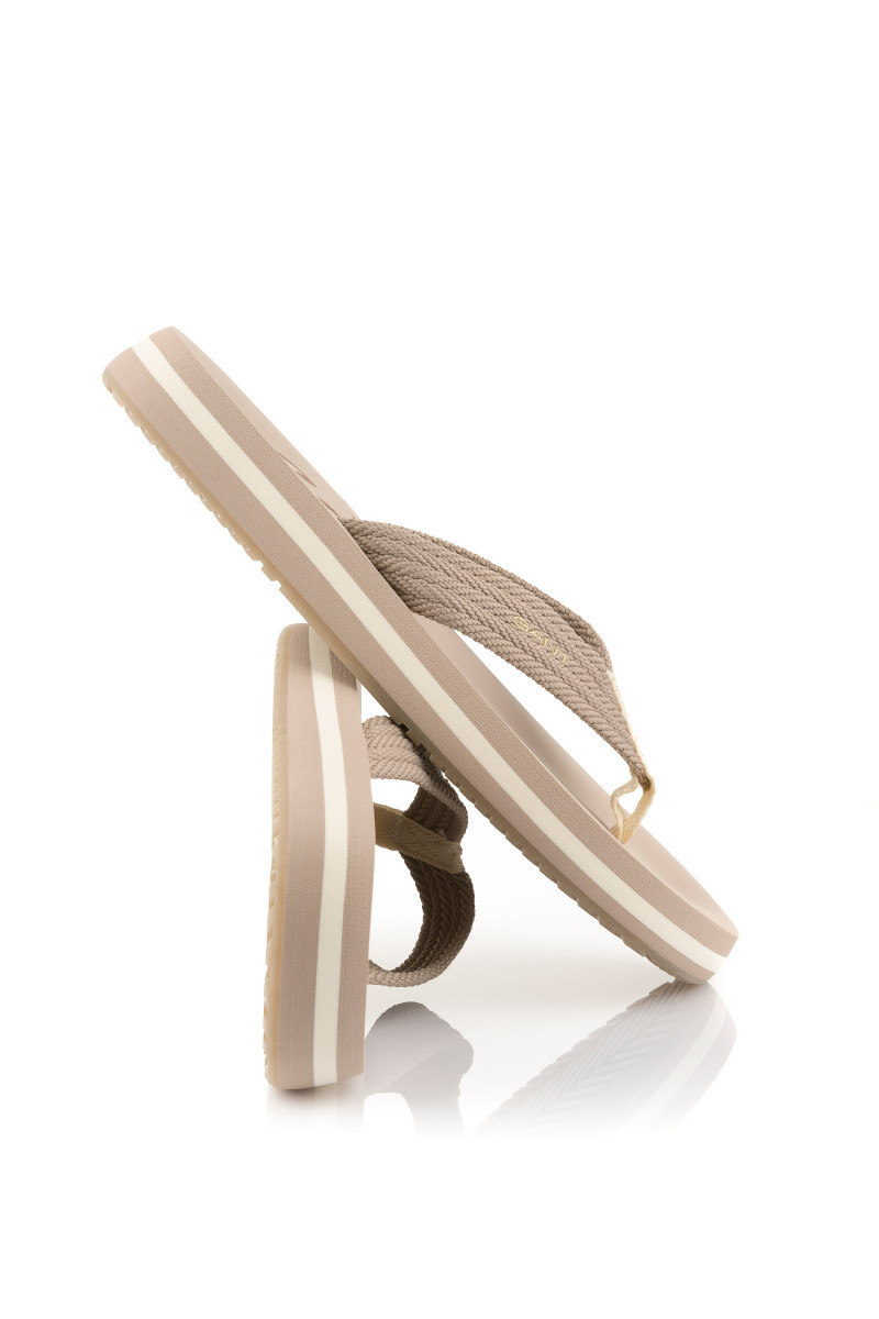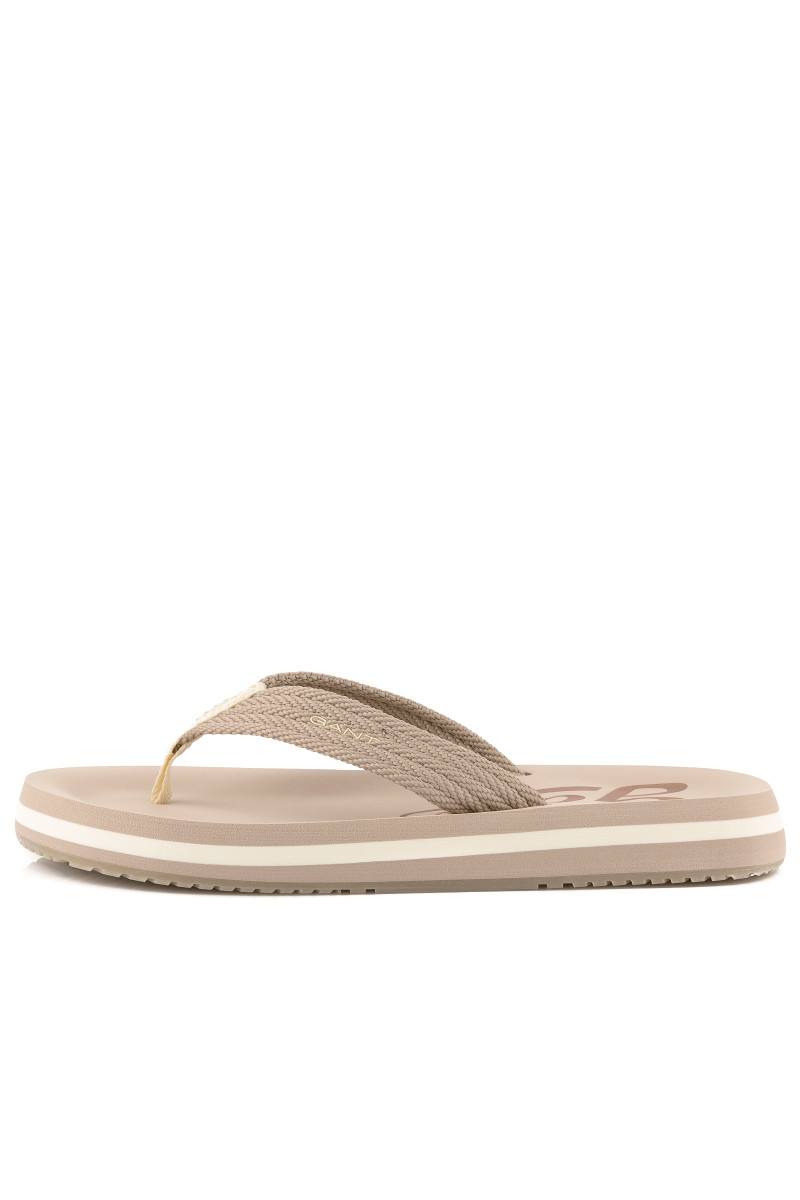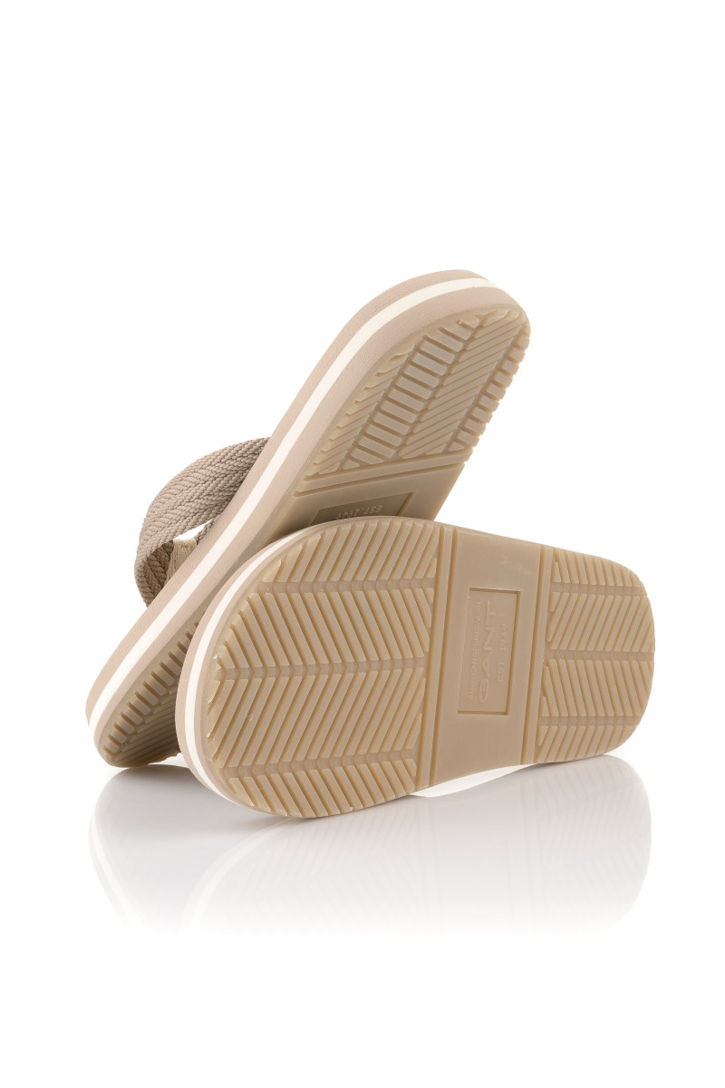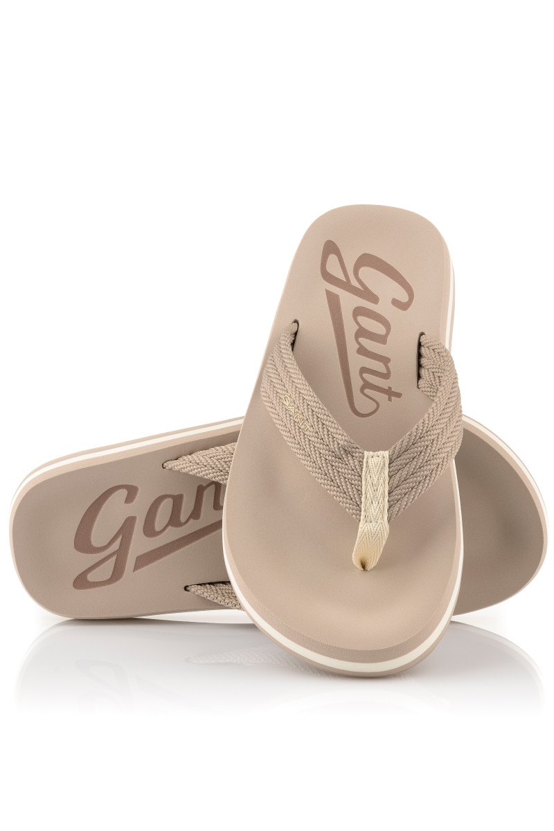Dámské žabky s volnou patou, které si vás získají svými originálními detaily a maximálním komfortem při nošení. Ležérní design se strukturovanou textilií na povrchu doplňuje decentní logo Gant umístěné na vnější straně. Vyšší pěnová podrážka je ozdobena kontrastním proužkem. Dokonale stylová obuv, která vám zpříjemní horké letní dny.